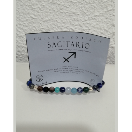 Pulsera zodiaco Sagitario. Pertenece al elemento del fuego, esta regido por Júpiter. Lleva minerales y plata.